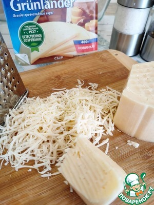 Сыр натрите на мелкой тёрке.