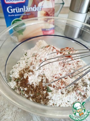 В миске соединить оба вида муки: в пшеничную добавьте кукурузную мелкого помола - она даст темпуре хрустящую текстуру и ровный золотистый цвет. Добавьте соль, красный перец, кориандр, семена зиры и орегано. Смесь хорошо перемешайте.