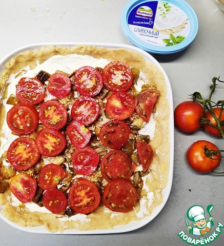 Такая летняя, августовская галета с баклажанами и помидорами на сырной подушке. Богатый, насыщенный вкус овощей, смягченный творожным сыром на хрустящем тесте. На пикнике или на даче будет отличным перекусом.
