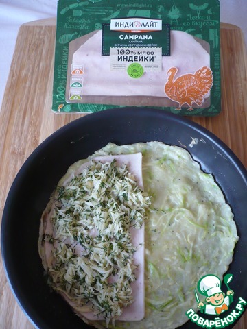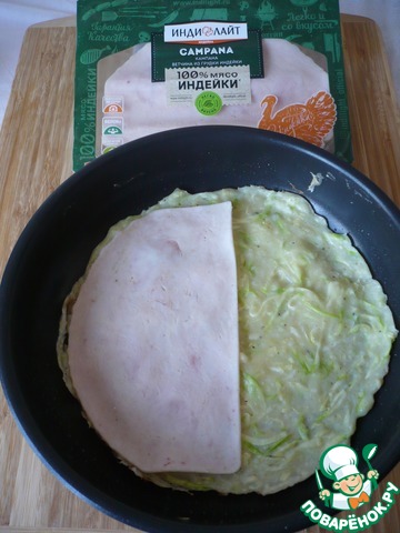Кабачковая лепешка с ветчиной из индейки и сыром готова.