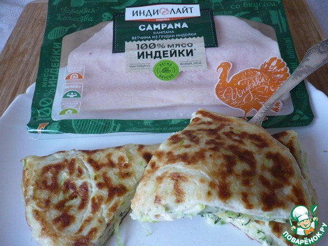 Для начинки кабачковой лепешки я взяла ветчину из грудки индейки ТМ "ИНДИЛАЙТ".