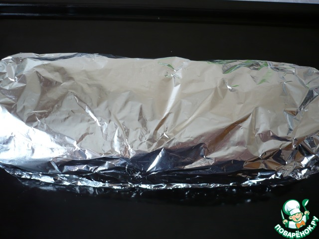 Заверните хлеб в фольгу и поставьте в духовку при температуре 180 градусов, на 15 минут.