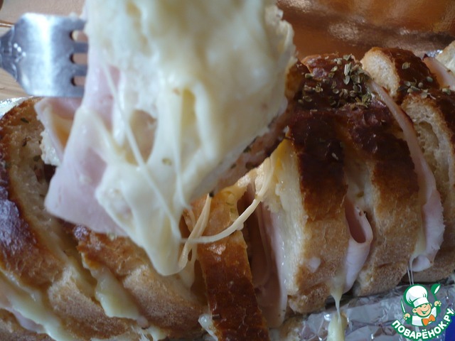 Хлеб - всему голова! Об этом мы знаем с самого детства. Действительно, когда есть хлеб, как много вкусного можно приготовить из обычного хлеба. Если нужно приготовить вкусное угощение для большой компании, а готовить нет ни времени... В такой ситуации оказываются даже самые страстные любители кулинарии. Ничего страшного! Для такого случая хочу предложить отличный рецепт: горячая и вкусная закуска, приготовить которую можно буквально минут за 25. Смотрим рецепт и готовим. Запеченный хлеб с сыром и ветчиной быстро и просто готовится, а его вкус воодушевит вас на новые кулинарные изыски.