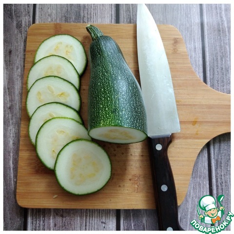 Ингредиенты даны на 2 больших тоста. Хлеб можно взять любой. Первое, что нужно сделать, нарезать цукини (кабачок) толщиной не более 0,5 см.