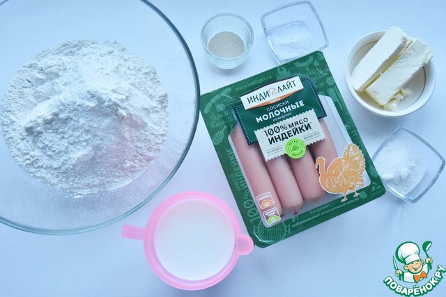 Ингредиенты для «Отрывной пирог с сосисками»: