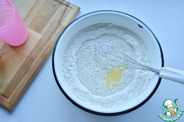 Добавляю сливочное масло и соль. Замешиваю тесто.