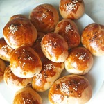 Подошедшее тесто делю на двадцать частей, по 37-40 граммов каждая. Заготовки округляю и накрываю пленкой, чтобы тесто не заветрилось.