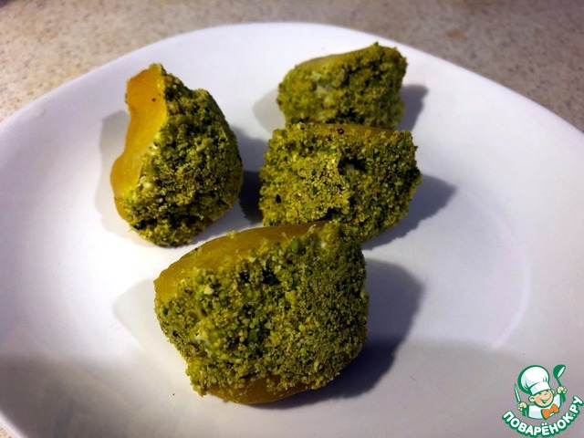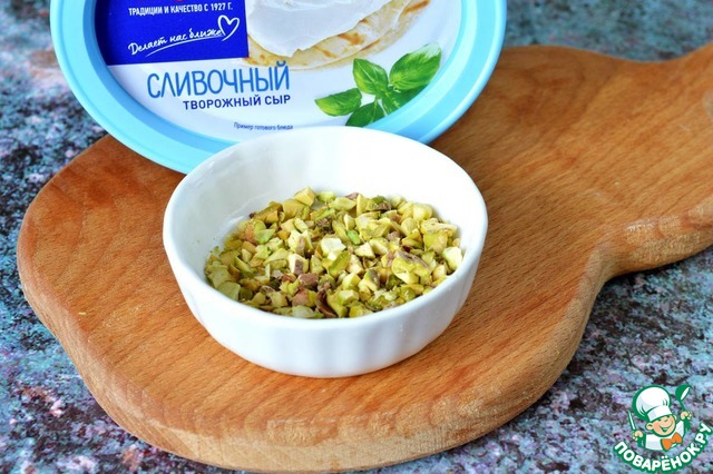 "Сырный бочок" запанировать в измельченных фисташках. -