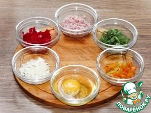 2. Перец сладкий очищаем от семечек. Вареную колбасу, перец и зеленый лук мелко нарезаем. Сыр натираем на крупной терке.