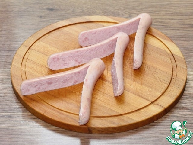 3. Сосиски надрезаем, но не до конца.