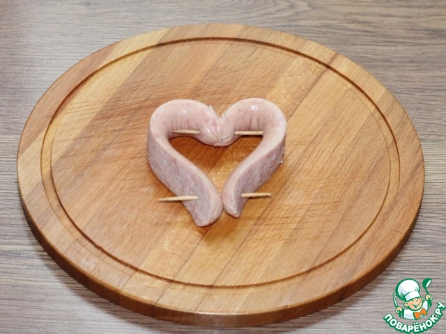 11. В середину кладем сердечко из сосиски.