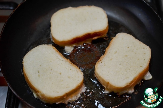 В сковороде разогрейте масло. Выложите хлеб начинкой вниз. Обжарьте с двух сторон по 3-5 минут.
