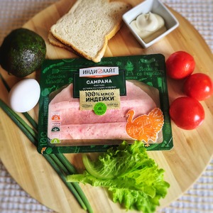 - Ветчина (ветчина из грудки индейки кампана ТМ "ИНДИЛАЙТ") — 1 ломт.