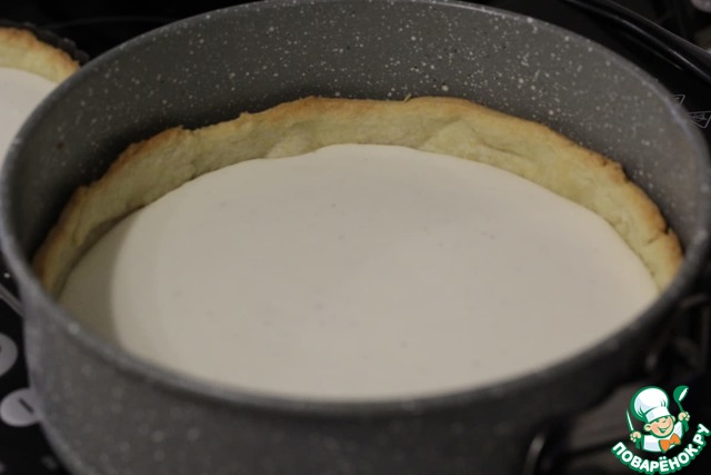 Выложить в форму, выстилая дно и бортики. Обрезать излишки.