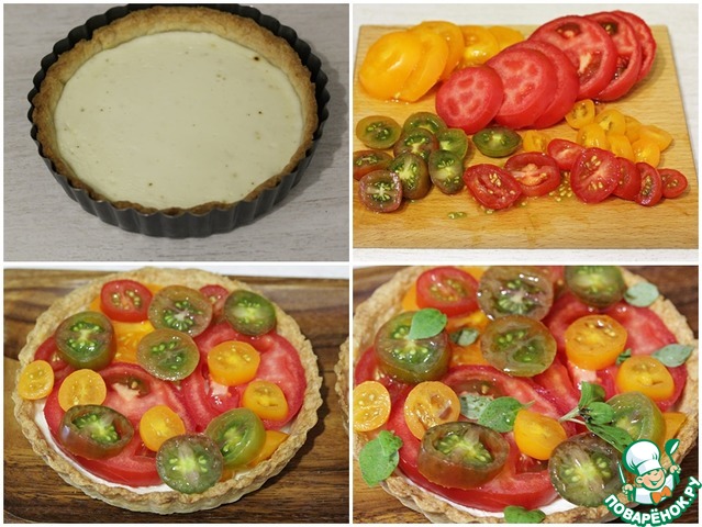 Выложить их на тарт в произвольном порядке и добавить листики базилика.