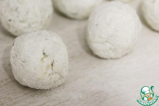 Если вам трудно скатывать шарики, вы можете убрать сырную массу в холодильник, после охлаждения она станет более плотной. -