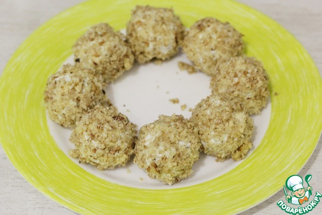 Ингредиенты для «Сырные шарики в ореховой крошке»: