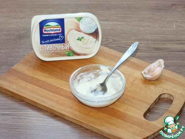 7. И смазываем чесночным сыром.