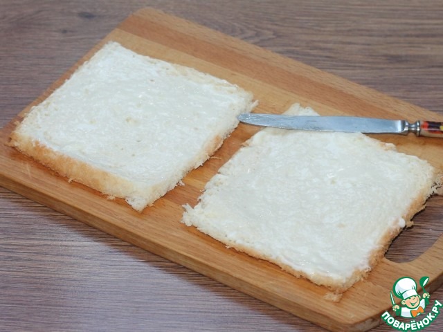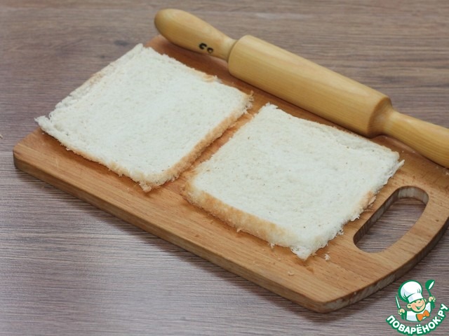5. У ломтиков хлеба обрезаем корочку.
