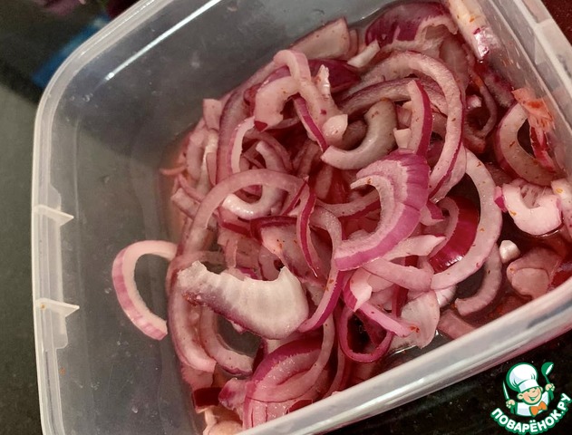 Смешайте в миске лук, сахар, сок лимона и сумах. Перемешайте и оставьте на 5-10 минут, промариноваться.