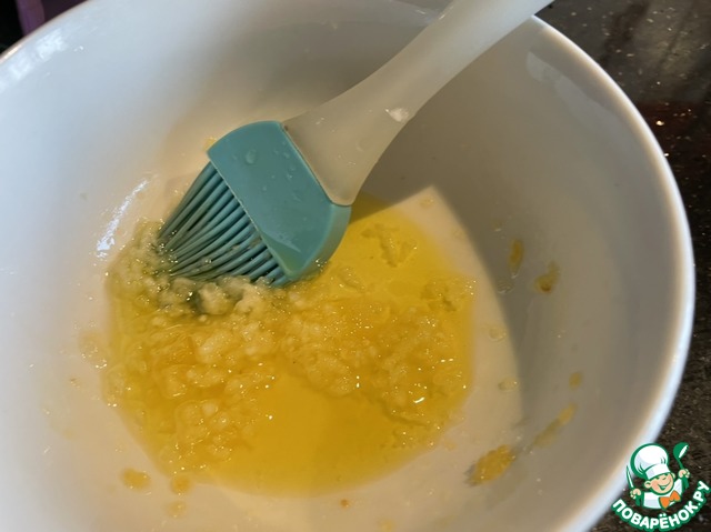 1 зубчик чеснока (можно и больше, кто как любит) выдавите прессом и смешайте с оливковым маслом (у меня трюфельное, оно придаёт особый аромат).