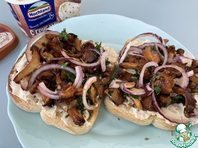 Брускетта с лисичками и плавленным сыром с грибами обладает ярким и гармоничным вкусом. Попробуйте и Вам обязательно понравится!