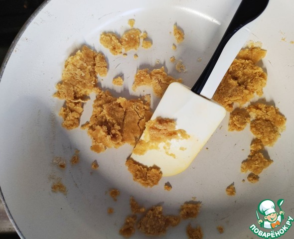 Потом добавим воду. Тщательно разотрем. Выложим в чашку, накроем встык и оставим до полного остывания.