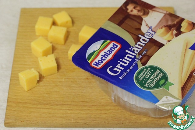 Сыр нарезать на кубики.