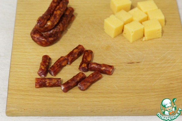 Ингредиенты для «Канапе с сыром и колбасками»: