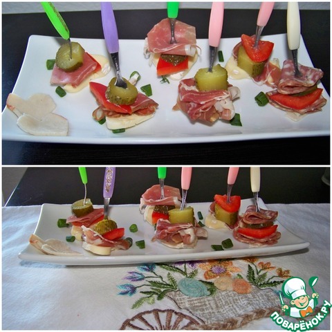 Рецепт «Канапе с сыром и колбасками»: