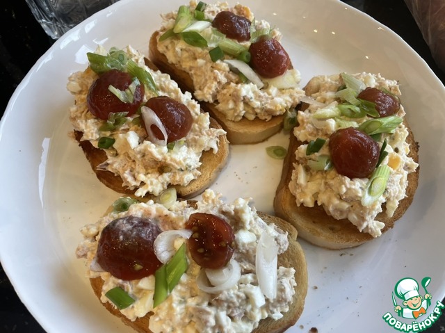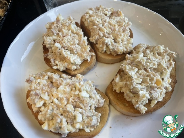 Выложите закуску из тунца на ароматный поджаренный хлеб.
