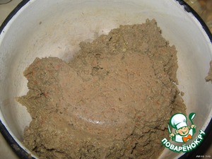Дальше у меня произошёл провал в памяти, и я забыла о фотоаппарате на некоторое время. Когда печень приготовится (через 2 часа, не раньше), пропускаем её или через мясорубку (2 раза) или протираем через сито. А я измельчила в блендере.