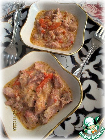 Бефстроганов с копчёной индейкой и овощами
