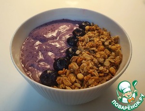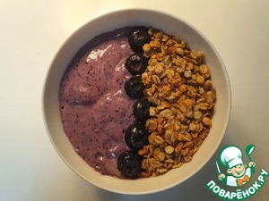 Готовую смесь выкладываем в ёмкость и украшаем свежей черникой и гранолой