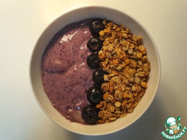 Смузи-боул с гранолой, свежей черникой и кокосовой основой, такой вкусный и освежающий🤤