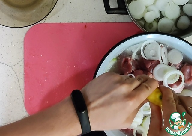 Если в рецепте используется лук, то его рекомендуется измельчить и использовать только отжатый сок. Сам луковый сок намного эффективней воздействует на исходные продукты для шашлыков.