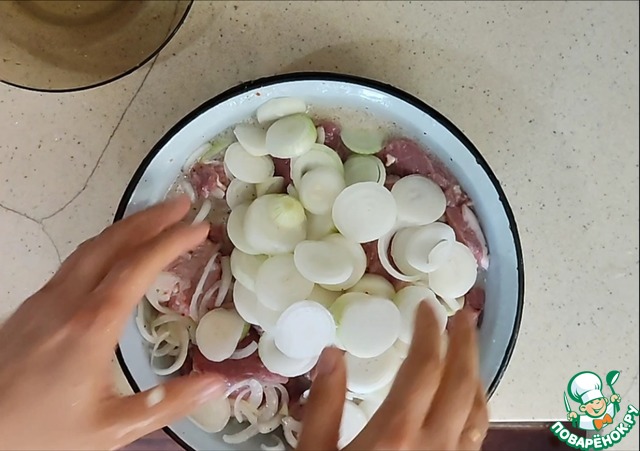 Добавляем лук порезанный крупными