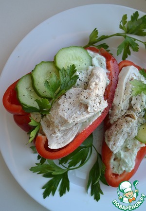 Сезонные болгарские перцы - самые вкусные, сочные, богатые витаминами. Предлагаю вашему вниманию быструю и лёгкую закуску из перцев, начинённых нежнейшим творожно-капустным пюре, питательной куриной грудкой и свежим огурцом. Уверена, вам понравится!
