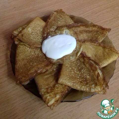Хороший способ утилизации небольшого количества кефира! Блинчики получаются тонкими и вкусными. Рецепт с сайта gotovim. ru немного модифицирован