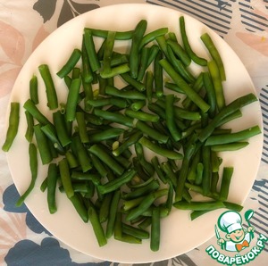 9. Фасоль варим отдельно в течении 5 минут. Охлаждаем без воды, чтобы она не переварилась.