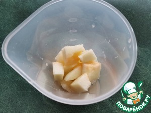 Нарезать мякоть дыни кусочками.