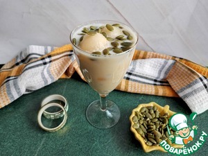 Украсить коктейль и посыпать тыквенными семечками.