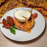 Колбаса в кляре с яйцом-пашот