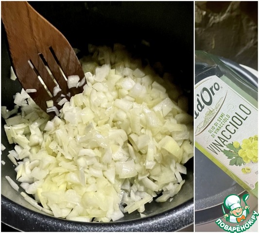 Немного его разогрел и высыпал в чашу лук. Аккуратно перемешивая, добился того, чтобы весь лук, так сказать, умаслился. И хорошо все прогрел. До состояния «лук вот-вот начнёт прожариваться».
