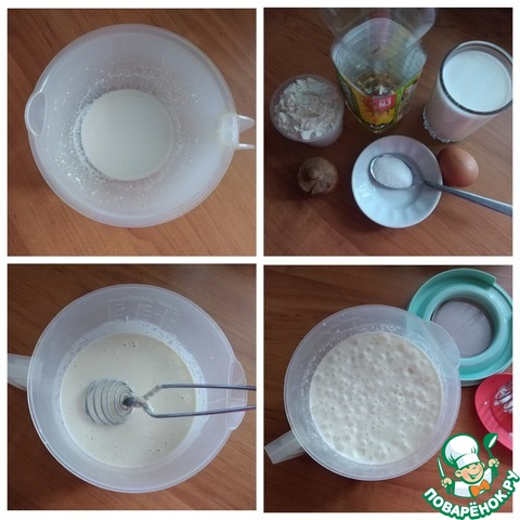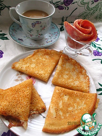 Рецепт «Тонкие ажурные дрожжевые блины с ветчиной»: