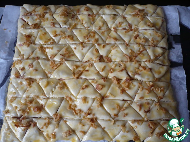Сверху "треугольнички" по желанию можно посыпать приправой из хрустящего, жаренного лука.