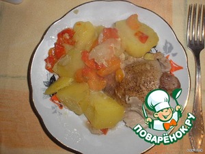 Как порой хочется и покушать вкусненько и не утруждать себя готовкой. Этот рецепт как раз такой! У него же столько преимуществ: 1. Просто. 2. Вкусно. 3. Недорого. 4. И самое главное, пока это всe готовится, у вас есть куча времени для себя - любимых! Единственное "НО"-нужна посуда для духовки С КРЫШКОЙ. Рецептик достался мне от хорошей знакомой Зои, за что ей огромное спасибо!