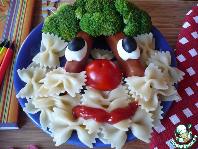 Дети любят сосиски и макароны, но не любители овощей, поэтому хочу предложить вам идею оригинально оформить еду - в виде"забавной" тарелки на завтрак школьникам. Улыбки ваших детей, да и взрослых будут гарантированы!