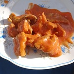 Маринуем кусочки куриного филе в смеси лимонного сока, специй, растительного масла и соевого соуса. Можно дать немного постоять Затем выкладываем на разогретую сковороду и обжариваем до золотистого цвета. Затем добавляем томат пасту, чуть обжариваем, сметану и слегка заливаем горячей водой. Тушим минут 5-10. (подробнее в видео) и вкуснятина готова! Подаем с рисом или гречкой.