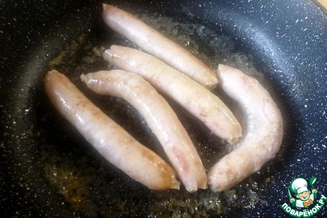 Обжарить колбаски до готовности.